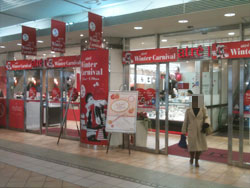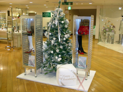 | 店舗内ステージディスプレイ | クリスマス装飾 | デパートガラス面サイン | デパートガラス面サイン |